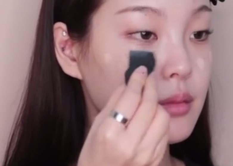 第二種方法是第一種的偷懶版,用手指取粉均勻點涂在臉上,再用美妝蛋拍開,少量多次~只要你的手取粉剛好,點涂的均勻且適量,就很容易拍開,但這不適用于那種速干的啞光粉底液,而且有點容易一次取粉過多,反而造成局部厚重卡粉。