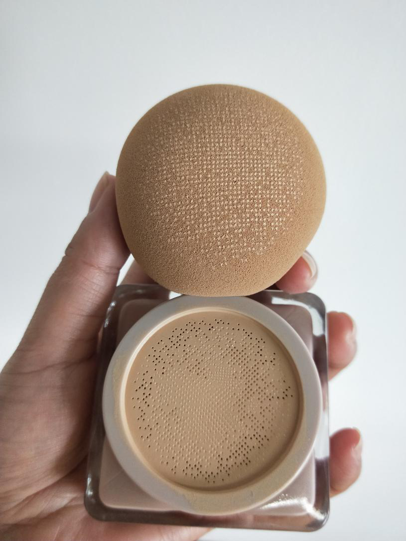 它的設計比較符合韓國化妝師倡導“少量多次”的底妝大法,987個小孔而且非常適合我偷懶,因為它出粉就像987個小手點涂在美妝蛋上,而且這個膜可以控制出粉量剛好,所謂少量多次就是我多懟幾次就可以了。(記得最開始看到這個產(chǎn)品的名字,很好奇啥是900目,還專門去搜索了一下,簡單來說,就是它的膜上面均勻分布 987個孔哈哈~)