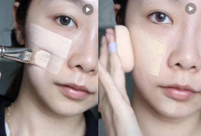 化妝師們要么第一種方式是刷子先薄薄的刷一層(如圖,小紅書隨便找的),然后美妝蛋拍勻拍開,如果有需要可以重復再來一遍,不要嫌棄麻煩,如果你們看過韓國女團化妝師的視頻,你們會發(fā)現(xiàn)人家重復了n多次!只要你粉量控制得好,這個方法真的很像磨皮拋光!但是顯而易見就是很浪費時間,建議大型約會之前使用!