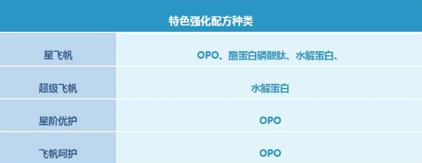 在特色強化配方種類方面,星飛帆添加的會比其他三類要多,而酪蛋白磷酸肽能有效促進寶寶對鈣、鐵、鋅等二價礦物營養(yǎng)素的吸收;水解蛋白可以提高寶寶對蛋白質(zhì)的吸收。
