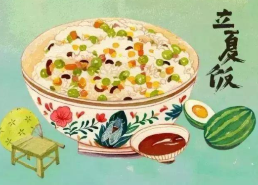 舊時(shí)立夏時(shí)節(jié),寧波一帶的鄉(xiāng)下用五種顏色的豆子加上粳米煮成五色飯,也稱立夏飯。隨著生活水平提高和物資的豐富,南方很多家庭將五色豆子替換成豌豆、雷筍、蠶豆、莧菜、香菇丁、咸肉丁、胡蘿卜等食材,寓意“五谷豐登”,頗具儀式感。俗話說“千補(bǔ)萬補(bǔ),不如立夏一補(bǔ)”,吃立夏飯同時(shí)也寄語人們希望一年到頭身體健康。