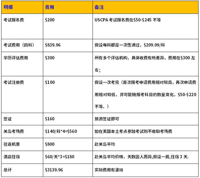 實(shí)際上美國(guó)每個(gè)州的考試費(fèi)用是差不多的,報(bào)考USCPA也不完全只看費(fèi)用的,選州關(guān)乎到的主要因素有學(xué)歷、學(xué)分,美國(guó)SSN,要不要申請(qǐng)證照等;USCPA考試的花費(fèi)如下: