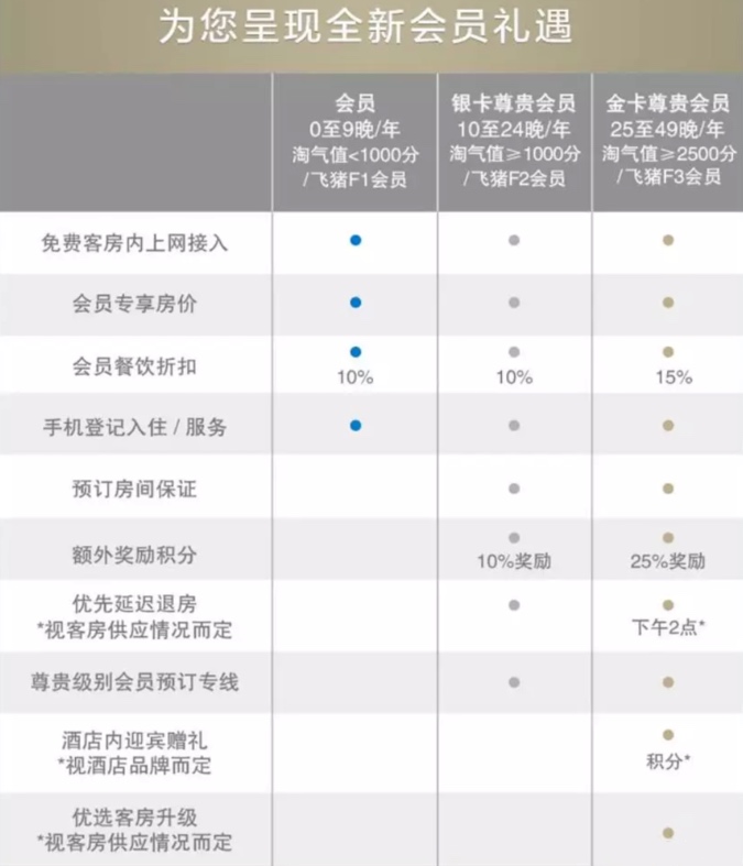 萬豪高級會員禮遇:很多人第一次認(rèn)識飛豬F2/F3會員就是因為和萬豪合作,飛豬金已經(jīng)成為萬豪的經(jīng)典玩法,成為不少人入坑萬豪的首選,飛豬F2會員可以匹配萬豪銀卡,F(xiàn)3會員可以匹配萬豪金卡。