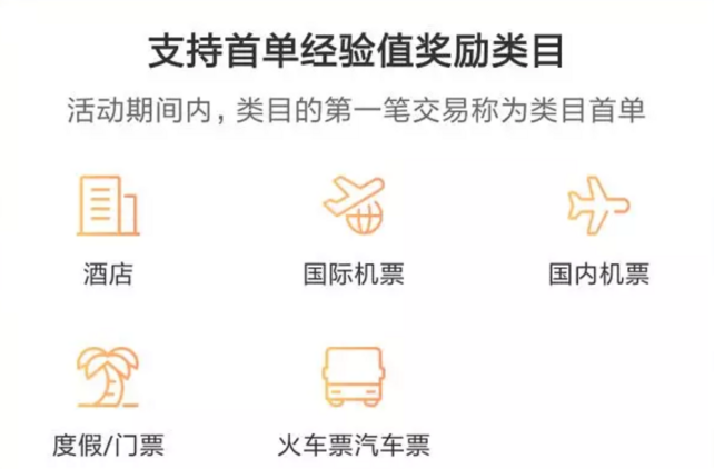 除了買東西以外,在飛豬“發(fā)現(xiàn)”板塊點一個贊可累積1點經(jīng)驗,寫一個商品點評可累積3點經(jīng)驗,最快的累積方式還是得利用“類目首單獎勵”快速升級,活動期間只要完成5個類目中,完成任意一個類目首單交易并出行就可獲得1500積分,上限4500積分。